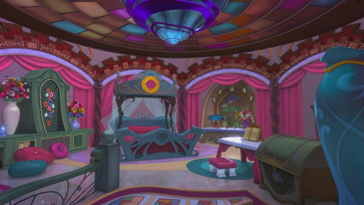 例如贝拉是粉色系甜妹,寝室以粉色和美食为主题,突显精灵菲莉公主爱美和嘴馋的特点。